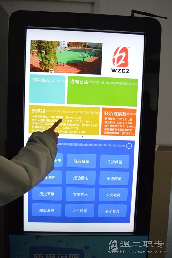 据悉,自助式电子书借阅机的应用是温二职专推广数字化阅读的一次尝试性实践,也是建设“智慧校园”过程中的一个重要环节。