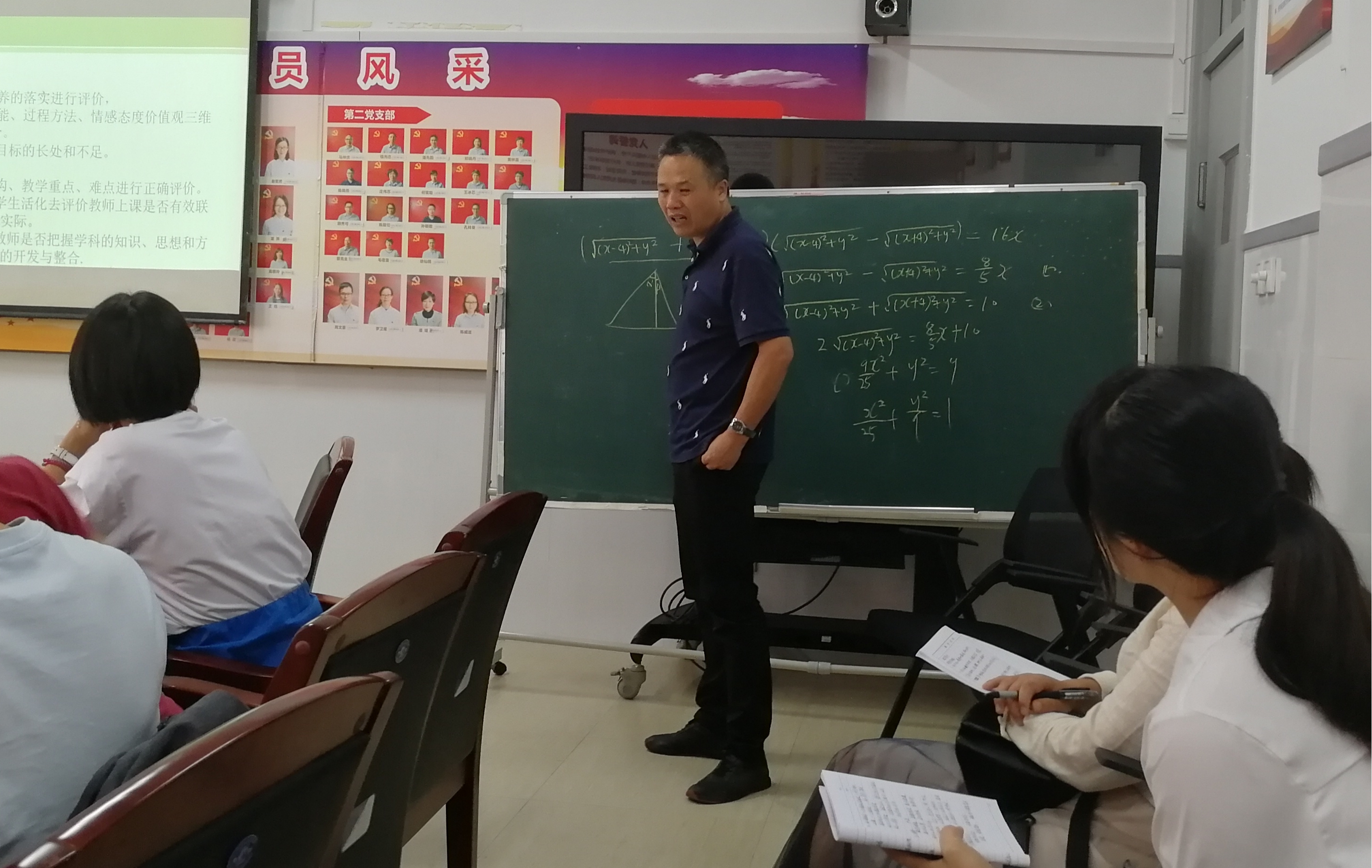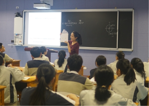 接着,由温州市财税会计学校的黄海茹老师带来的题为《椭圆的定义与标准方程》的展示课例。黄老师上课温文尔雅,通过模型展示,形象而自然的将椭圆的问题从学生熟悉的圆上引出,通过板书结合ppt展示整个公式的推导过程,给学生极大的震撼力,将数学的思维充分暴露在学生面前,本节课学生学的意犹未尽,教师教的不亦乐乎,教学氛围和教学效果都值得大家借鉴。