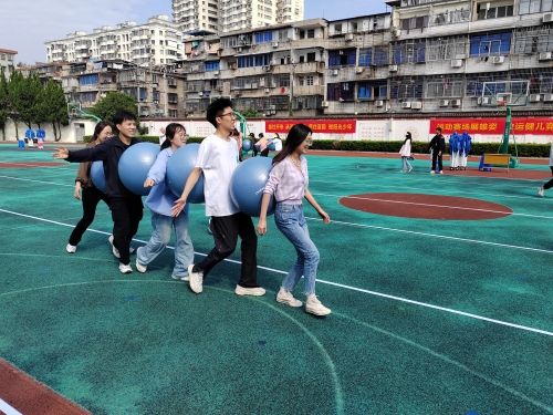 本次活动的项目是接力运球,需要参赛的6位老师同心协力、协调配合,以最快的速度完成比赛。队员们满怀激情地投入比赛,伴随着富有节奏的口号,老师们依次接力,最终通过终点线的那一刻,大家都充满了喜悦。