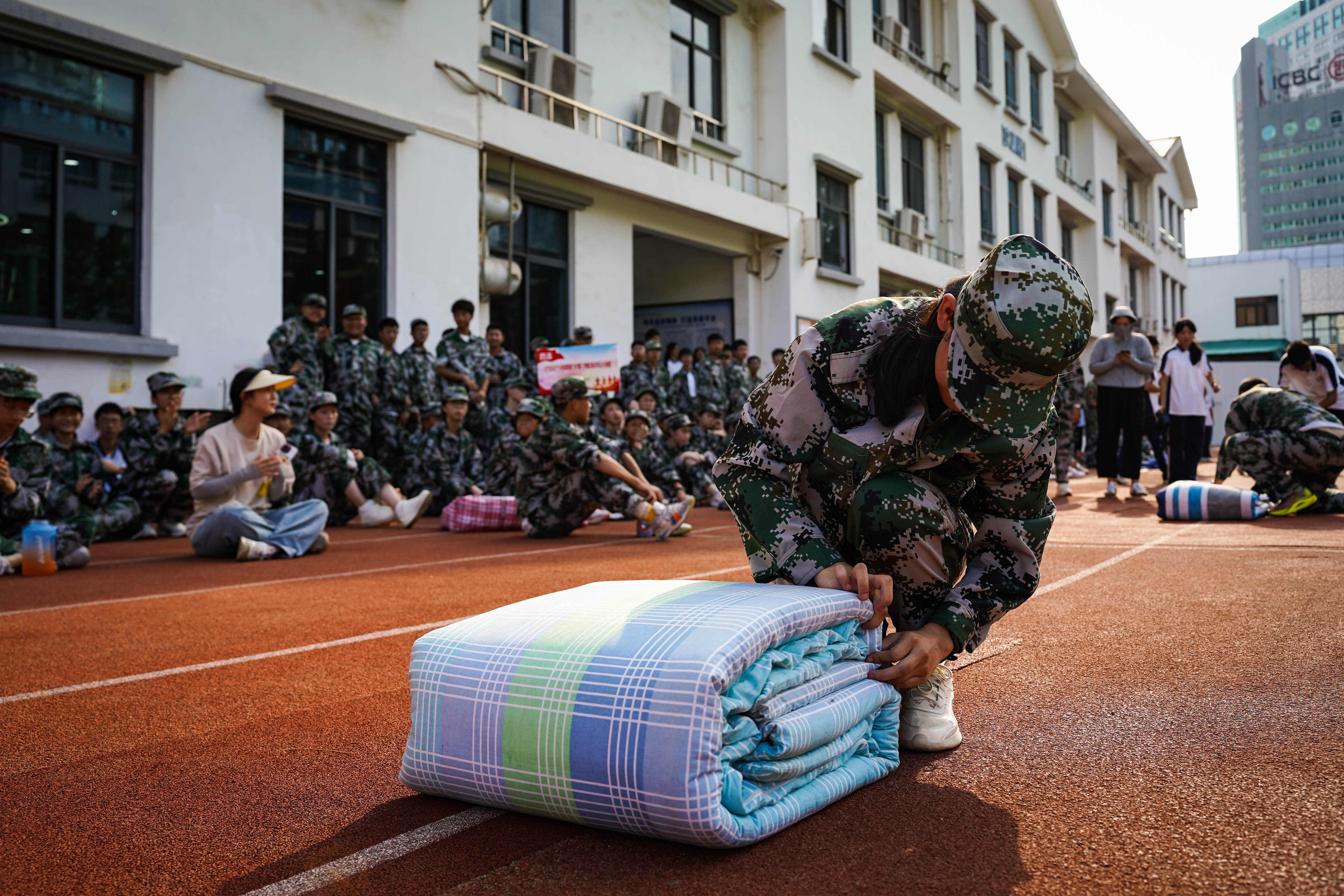 寝室内务整理是军训的必修课之一,也是养成良好生活的重要抓手。为了提高同学们的内务整理能力,培养严谨的生活态度,学校举办了一场叠被子比赛。