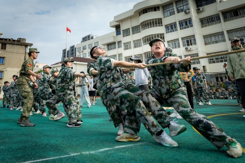 忙碌的常规训练之余,学校为增强班集体凝聚力,营造比优赶超的良好氛围,先后举办了拔河比赛和叠被子比赛。