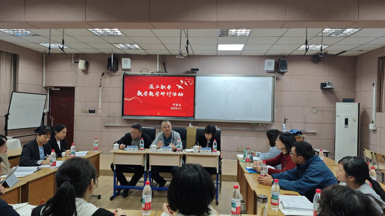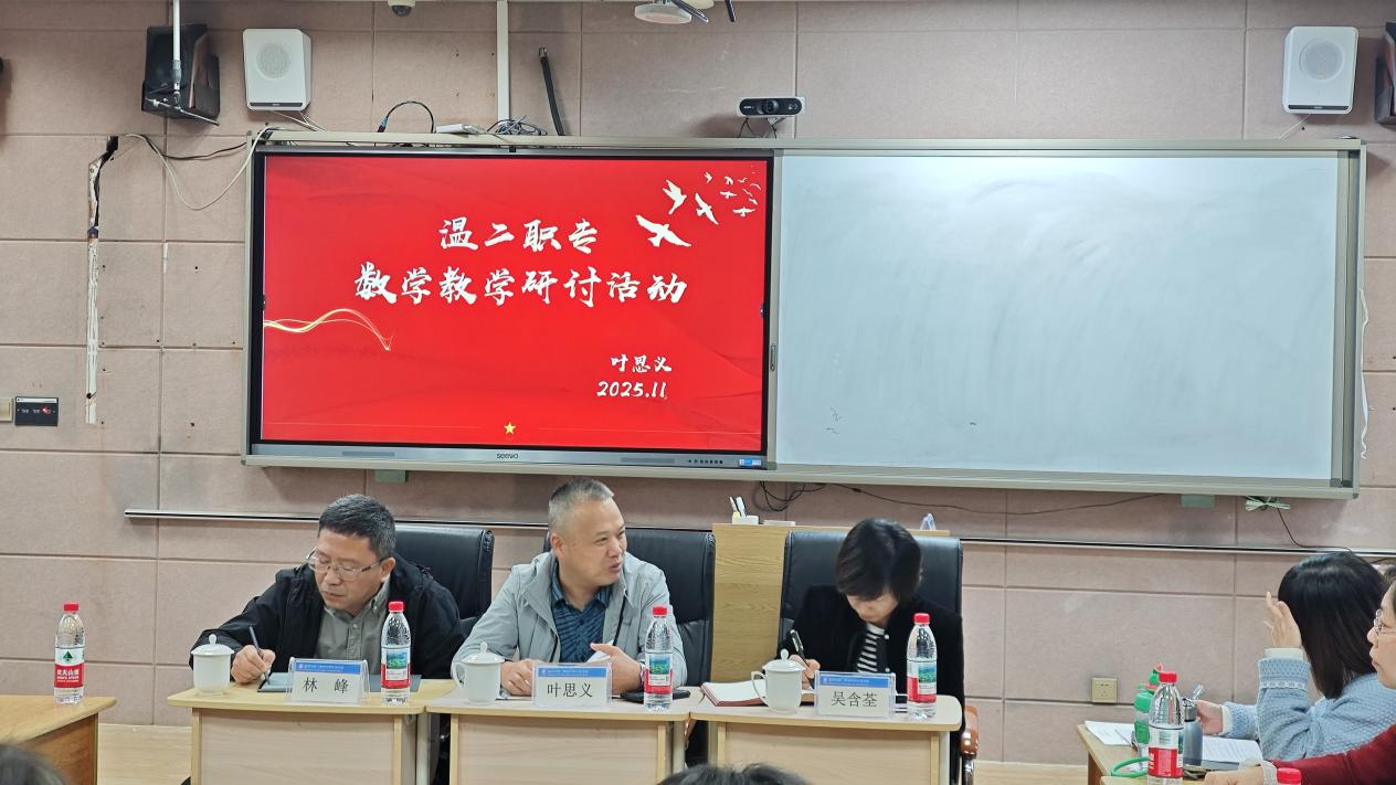 为精准分析中职数学高考情况,明确高三教学方向,提升学科教学质量与教师专业能力,近日,在温州市第二职业中等专业学校黎明校区成功举办数学教学研讨活动。温州市中等职业教育数学教研员叶思义老师、温州市第二职业中等专业学校校长吴含荃、副校长林峰及全体数学教研组成员共20余人齐聚一堂,聚焦教学难点,共谋学科发展。