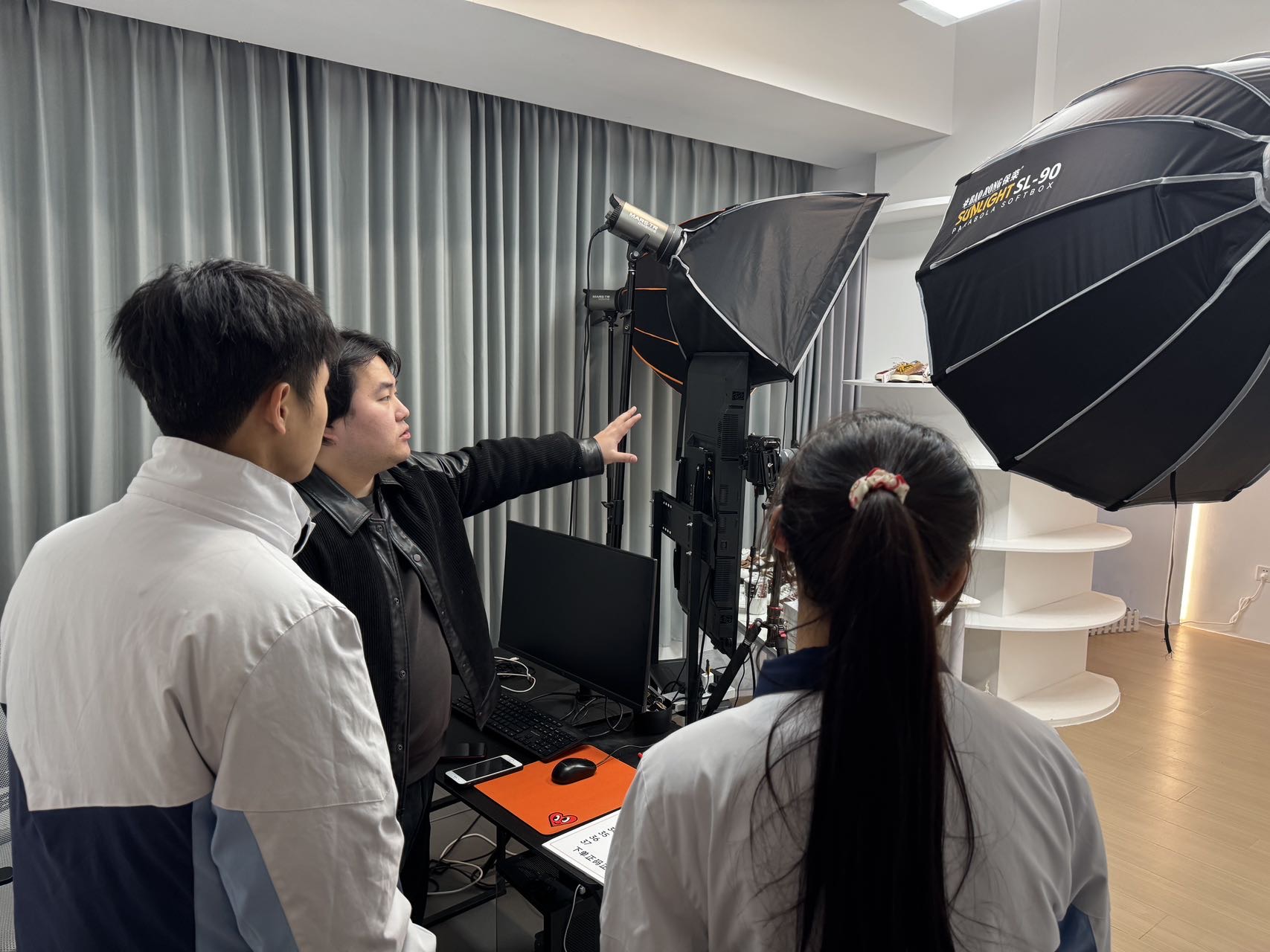 沄天公司精心搭建全场景实训环境,配备资深运营导师、专业直播团队及辅助人员,提前梳理实训目标、发放产品资料,保障实训精准高效。实训初期,学生团队分组进入直播间,近距离学习主播话术表达、产品展示及场控节奏把控、后台操作细节;并通过大屏同步直播实况,重点记录脚本执行、互动设计等关键信息,深化对鞋类直播运营逻辑的认知。