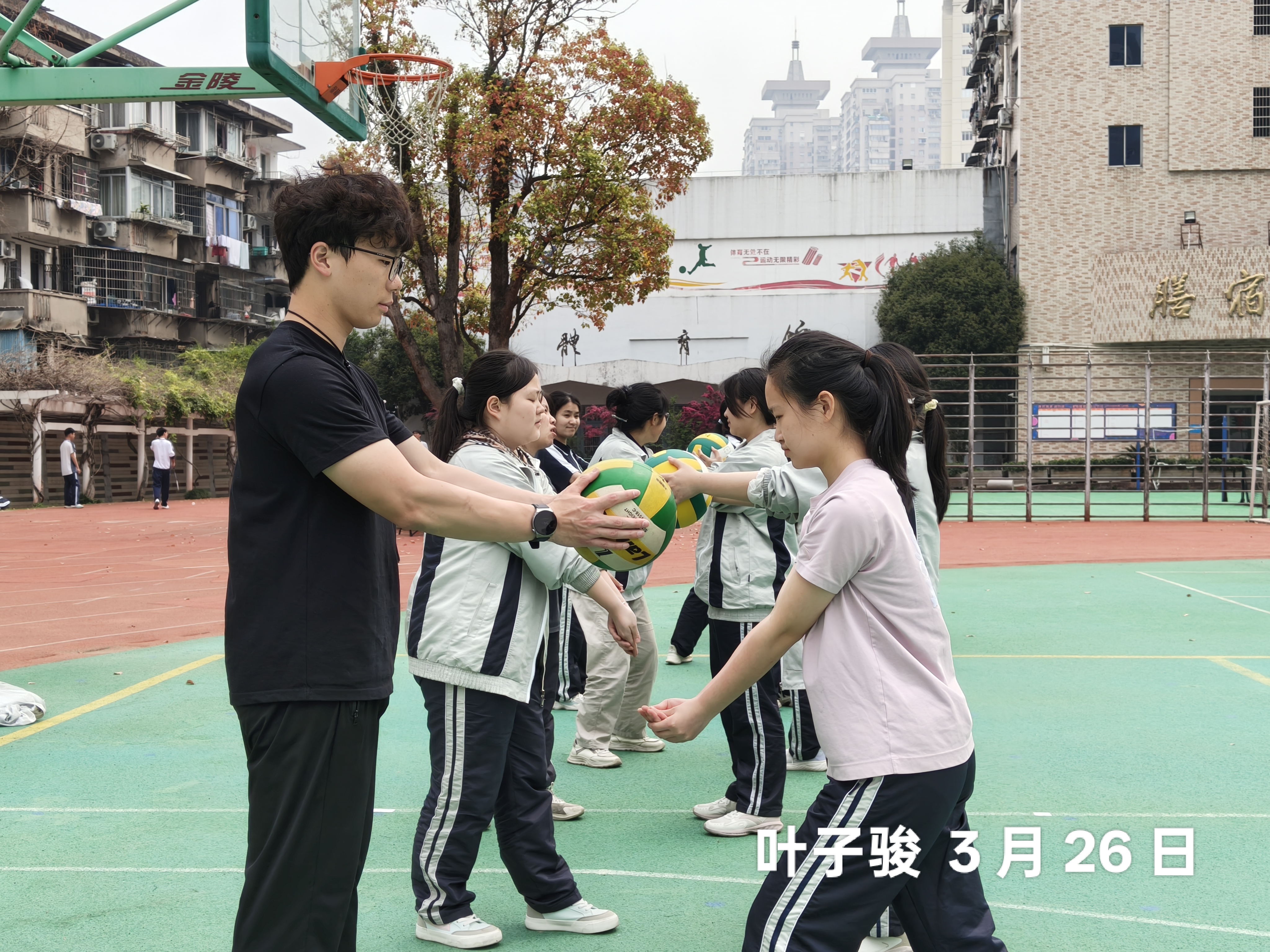 在为期两个月的教育实习中,九位实习生分赴二职两个校区,跟随资深体育教师系统学习教学实践。根据实习生田径、球类等专项特长,量身定制涵盖课堂教学、课程设计、班级管理的立体化培养方案。在夯实专业优势的基础上,通过跨项目实践课程补足教学短板,系统提升实习生综合教学能力。