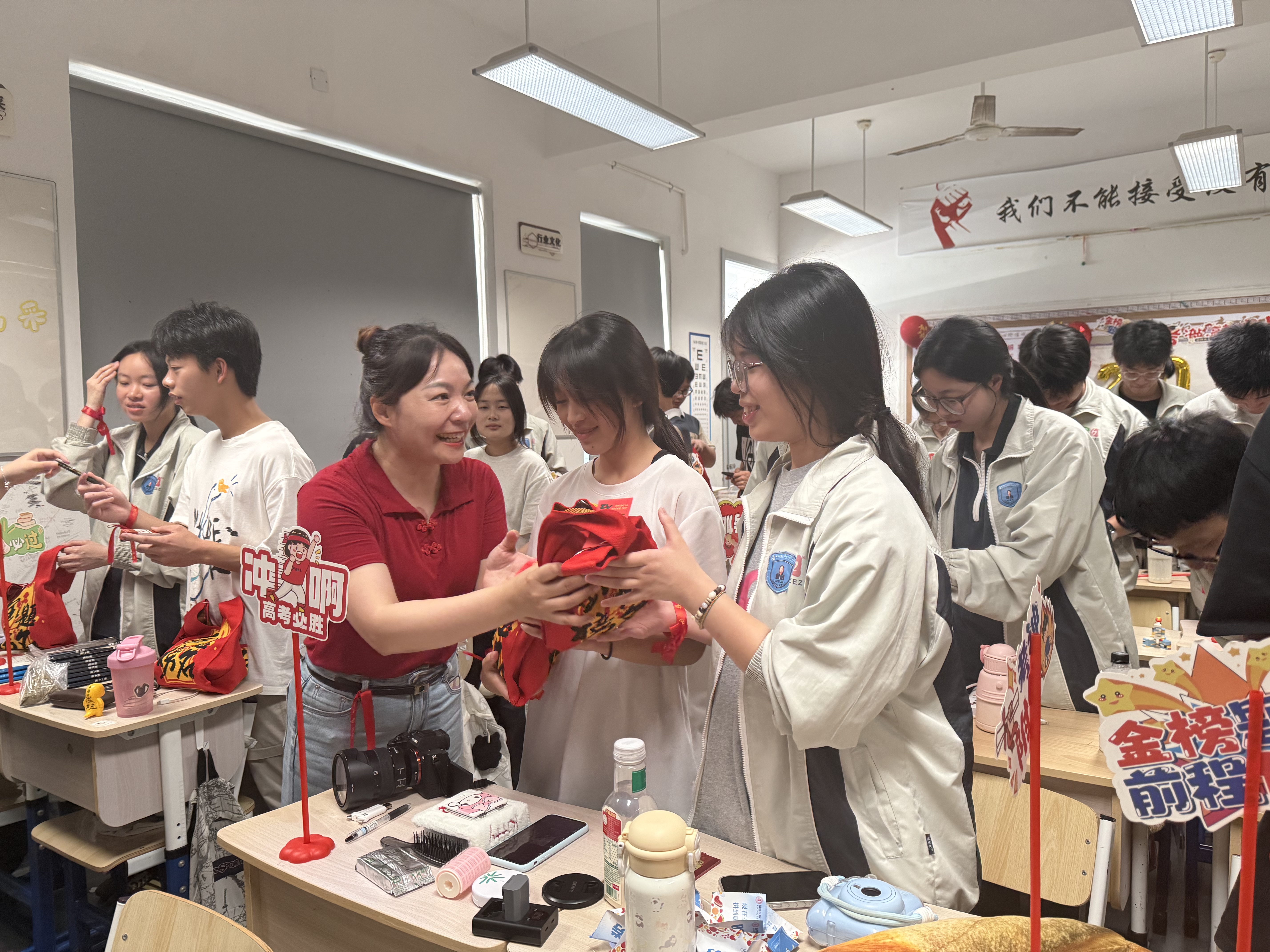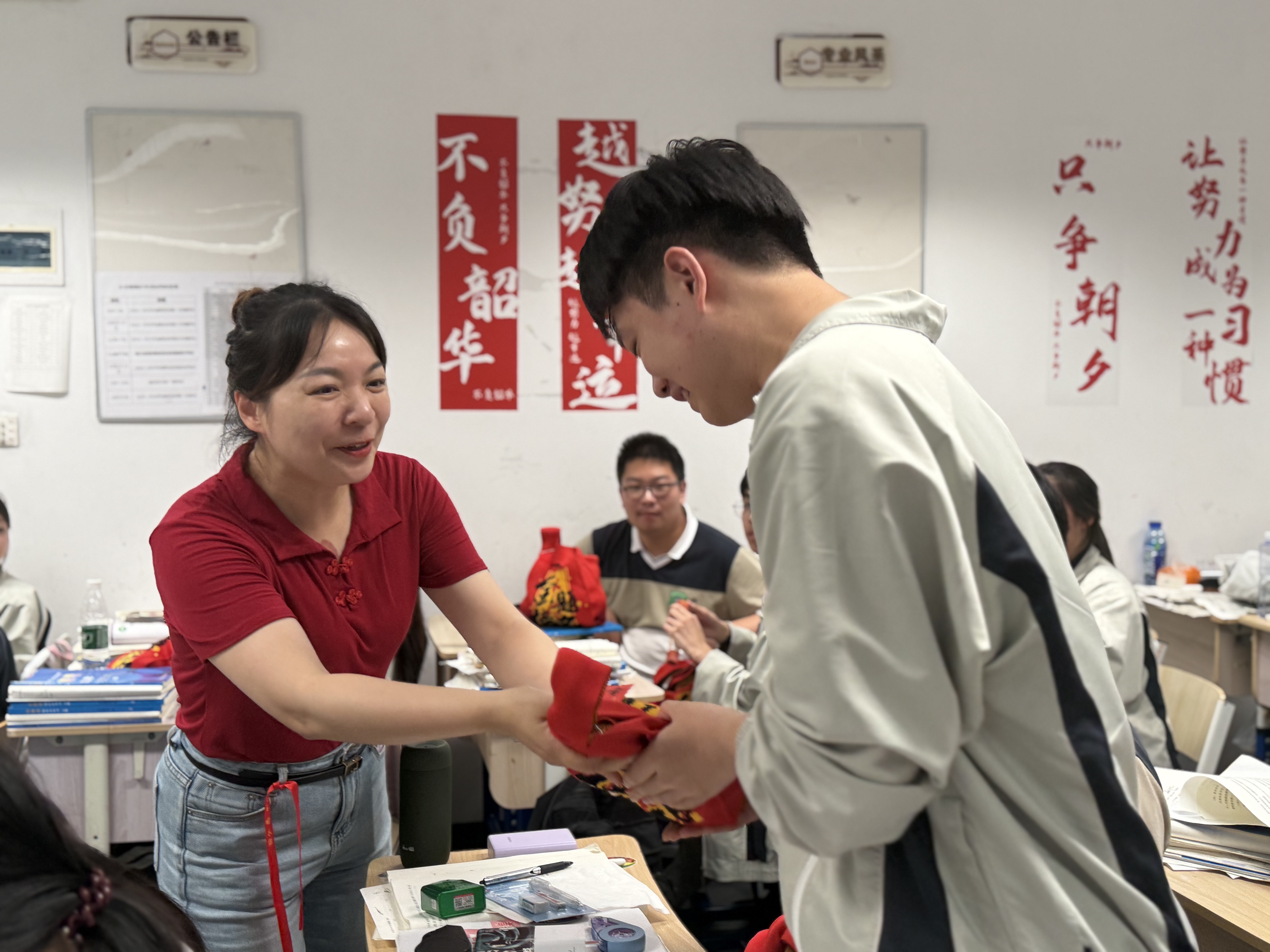 在学校的暖心示范下,各毕业班级也纷纷亮出心意。教室内外,一场场创意十足的“出征仪式”次第绽放:有的班级齐声呐喊誓言,气势如虹;有的师生击掌为盟,传递力量;有的张贴梦想卡片,汇聚星光;有的同唱励志歌曲,旋律激昂……多样形式点燃了青春豪情,将校园化作了信心与斗志的海洋。