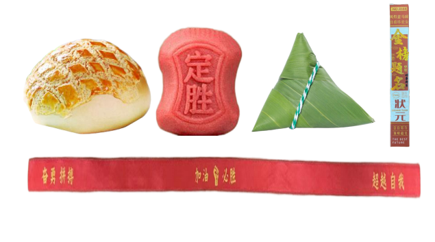 “包糕粽”礼包,谐音“包高中”,寄托着学校对莘莘学子最殷切的期盼。礼包内涵丰富:象征“步步高”的定胜糕、寓意“高中金榜”的暖心粽、补充能量的面包,以及“金榜题名”专用笔和印有“加油”字样的励志手腕带。每一件物品都承载着美好祝愿,为明日征程备下精神与能量的双重“粮草”。